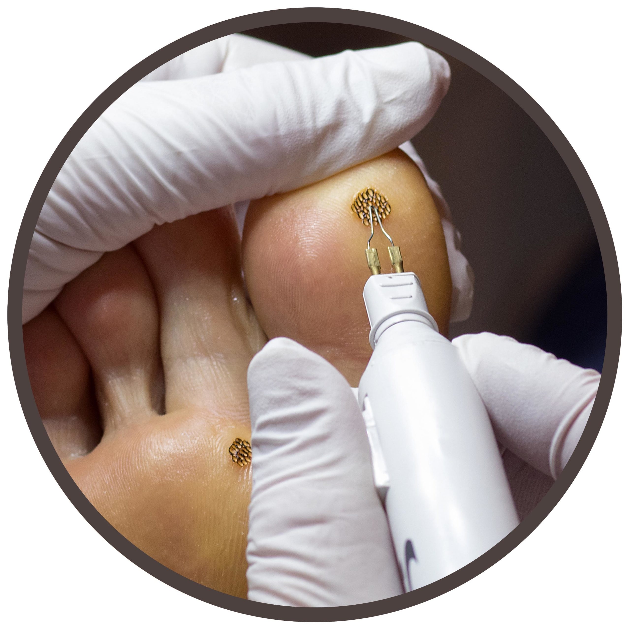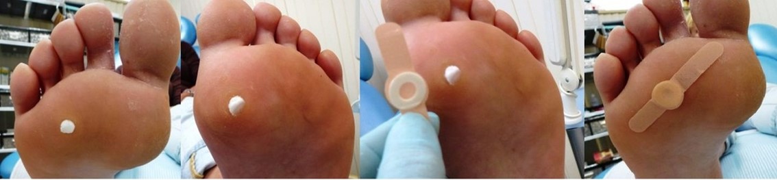 - Het eventueel aanwezige eelt wordt verwijderd van de wrat;